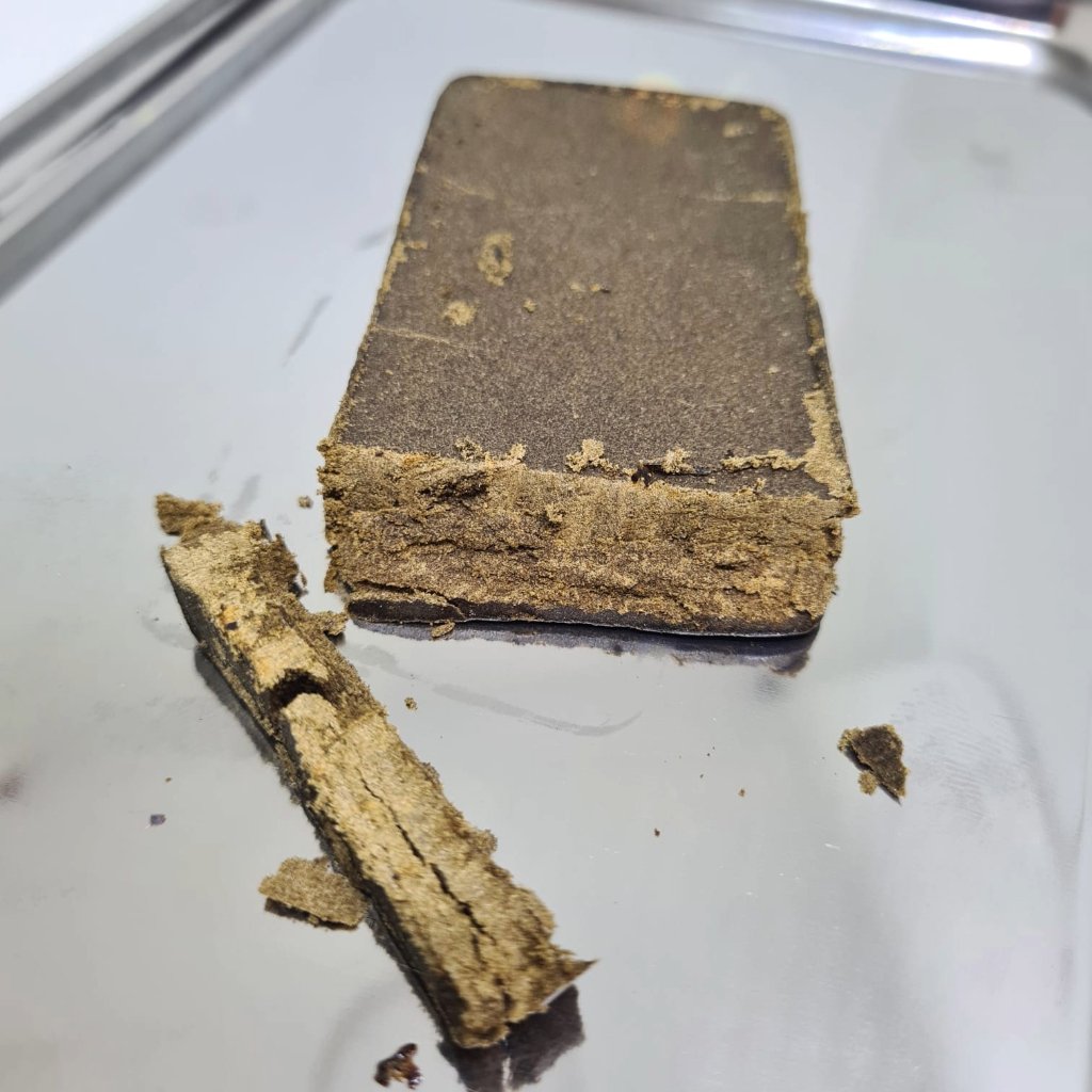 Sa texture dense et friable, avec une couleur marron foncĂ© Ă  l’extĂ©rieur et plus claire Ă  l’intĂ©rieur, offre des arĂ´mes floraux et une saveur qui rappelle les hash marocains traditionnels des annĂ©es 90.